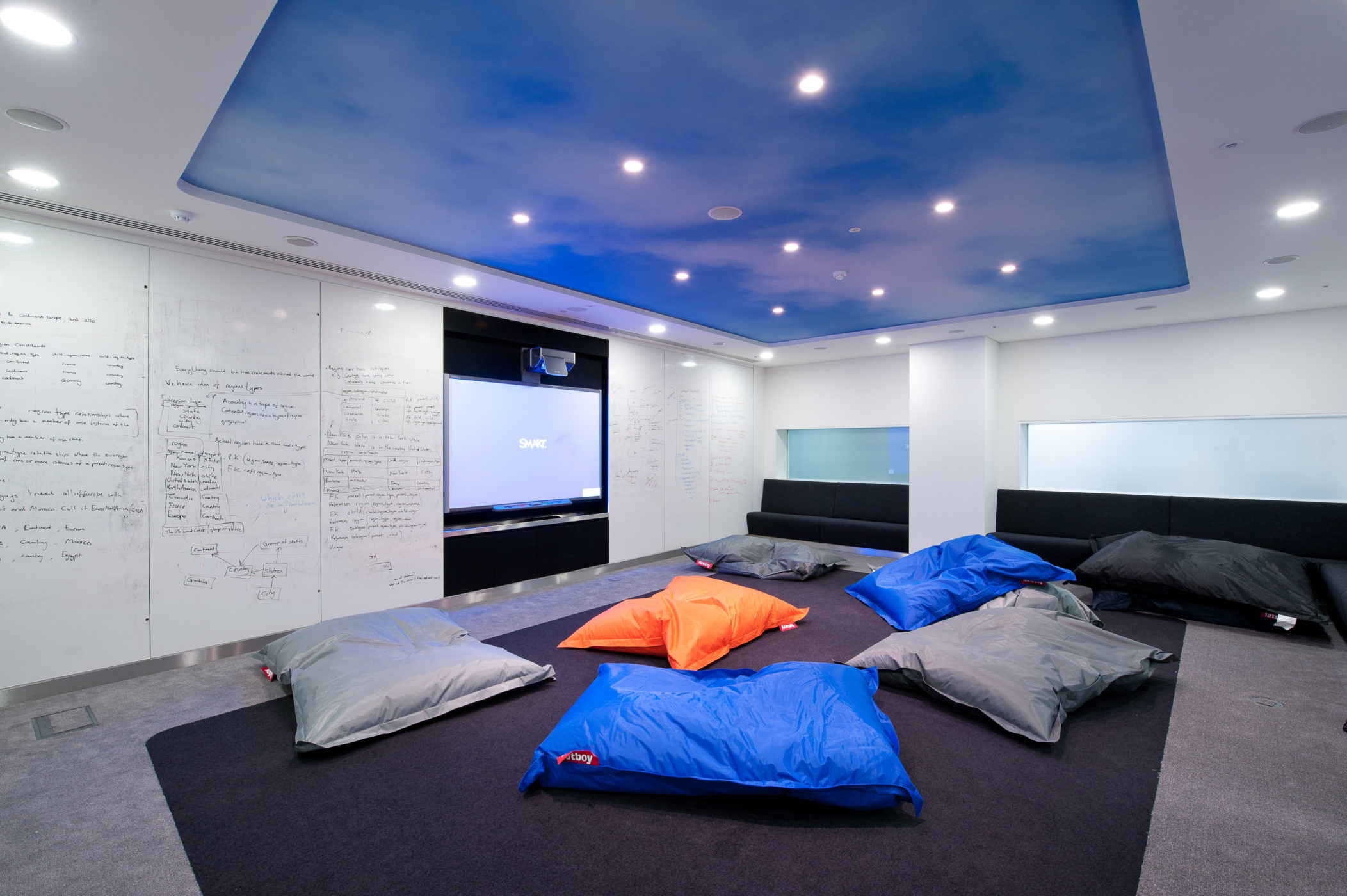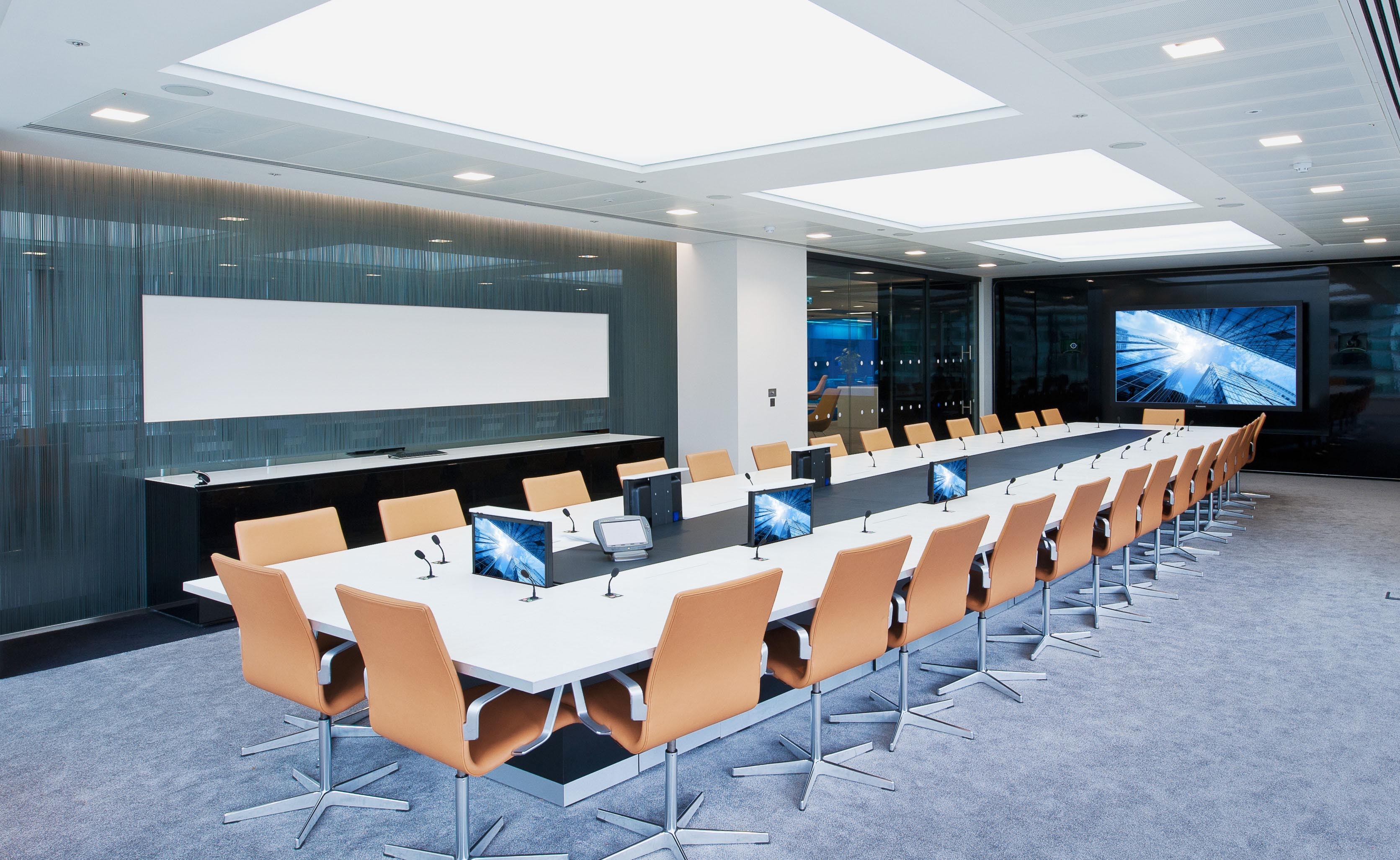 The installation consisted of formal and informal meeting spaces, three video conferencing rooms, an enhanced video conferencing room, team room, auditorium and boardroom all within 12 weeks.